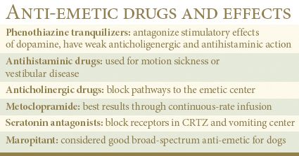 Cats 8 mgkg PO for motion sickness dogs Metoclopramide D2 dopaminergic antagonist 5-HT3 serotonergic antagonist 5-HT4 serotonergic agonist Antiemetic Prokinetic agent Increases gastroesopha-geal sphincter tone 0205 mgkg PO SC or IM Q 8 H 12 mgkgday CRI Nizatidine Cholinesterase inhibitor Histamine H2 receptor antag-onist. Metoclopramide is sold per tablet or as an injectable or syrup. Metoclopramide thus helps the vomiting patient by normalizing stomach motility and acting directly on the brain to reduce the sensation of nausea.